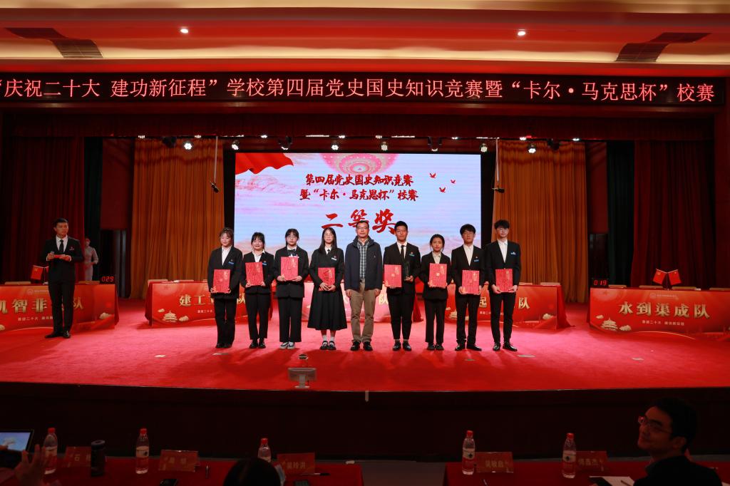 经过现场计分、评委打分,最终“机智非凡队”获得一等奖、“水到渠成队”“经久不衰队”获得二等奖、“建功立业队”“艺起答题队”获得三等奖。到场领导给获奖队伍一一颁奖,并向同学们表示祝贺。