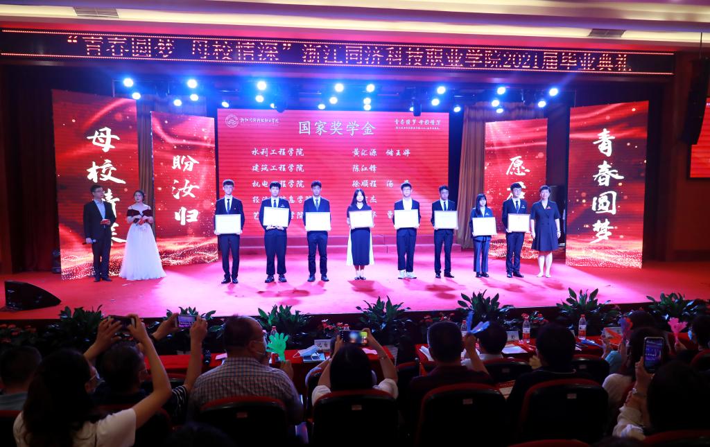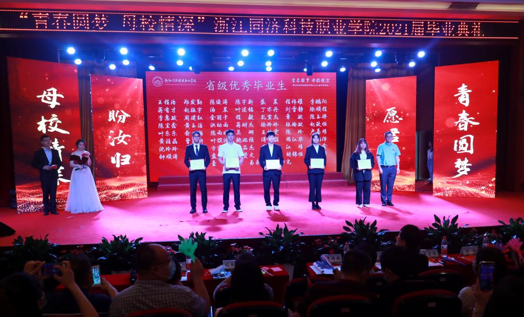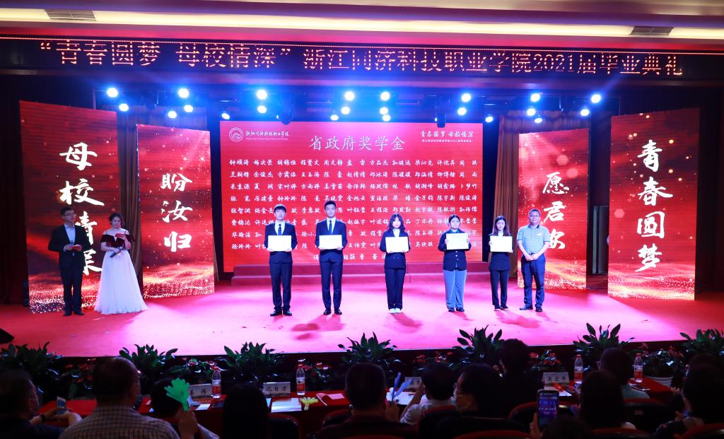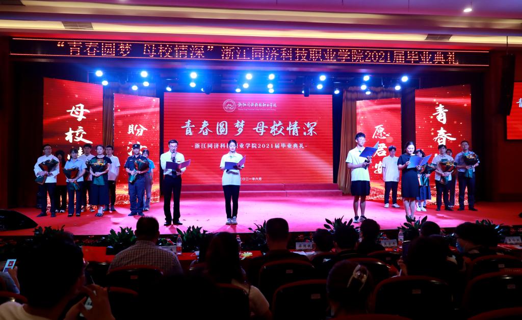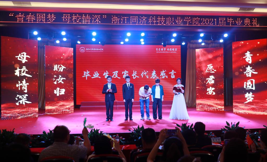 梁国钱校长代表学校向毕业生送上美好祝福。他表示,2021届毕业生三年来,在同科校园获得了迅速成长,有8位同学获得国家奖学金、86人获得省政府奖学金、76人被评为浙江省普通高等学校优秀毕业生、248人被评为校级优秀毕业生,还有许多同学多次在全国、全省各类技能竞赛中斩获佳绩等。特别是在令人难忘的2020年,青年学子以各种方式勇敢投身伟大的抗疫斗争,生动诠释了新时代大学生的社会责任感和担当精神,让母校深感自豪。
