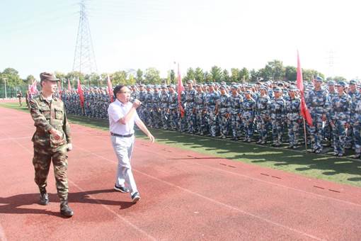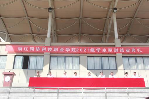 校长梁国钱代表学校向辛勤付出的各位教官表示衷心的感谢,向为此次军训工作默默付出的各位老师致以崇高的敬意。向顺利完成军训任务的同学们表示热烈的祝贺!他表示,军训是大学入学的第一课。同学们以饱满的热情和积极向上的态度全身心投入,顺利完成了紧张有序的军训任务,并希望同学们能从军训中汲取不怕苦不怕累、团结拼搏的精神品质,化为立志成才、报效祖国的动力,把军训收获的优良作风和坚韧品格贯穿到大学三年的学习生活中去,开启大学生活的壮丽篇章!随后,校长梁国钱代表学校向承训部队浙江建设职业技术学院副校长成卫定赠送锦旗。