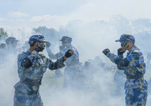 伴随着庄严的升国旗、奏国歌仪式,结业典礼正式拉开帷幕。军训汇报表演分阅兵式、分列式和军事技能表演三部分。各个分列式方队精神抖擞、士气高昂,依次齐步走过主席台接受检阅。在分列式表演中,同学们昂首挺胸,英姿勃发,步履坚定,神采飞扬,彰显了新一代同科学子激情昂扬的精神风貌。在军事技能表演中,同学们依次表演了警棍术、匕首操、流水格斗、综合格斗、战术表演等课目。动作整齐划一,口号震耳欲聋,身姿矫健、势如霹雳,获得了在场师生的阵阵掌声。