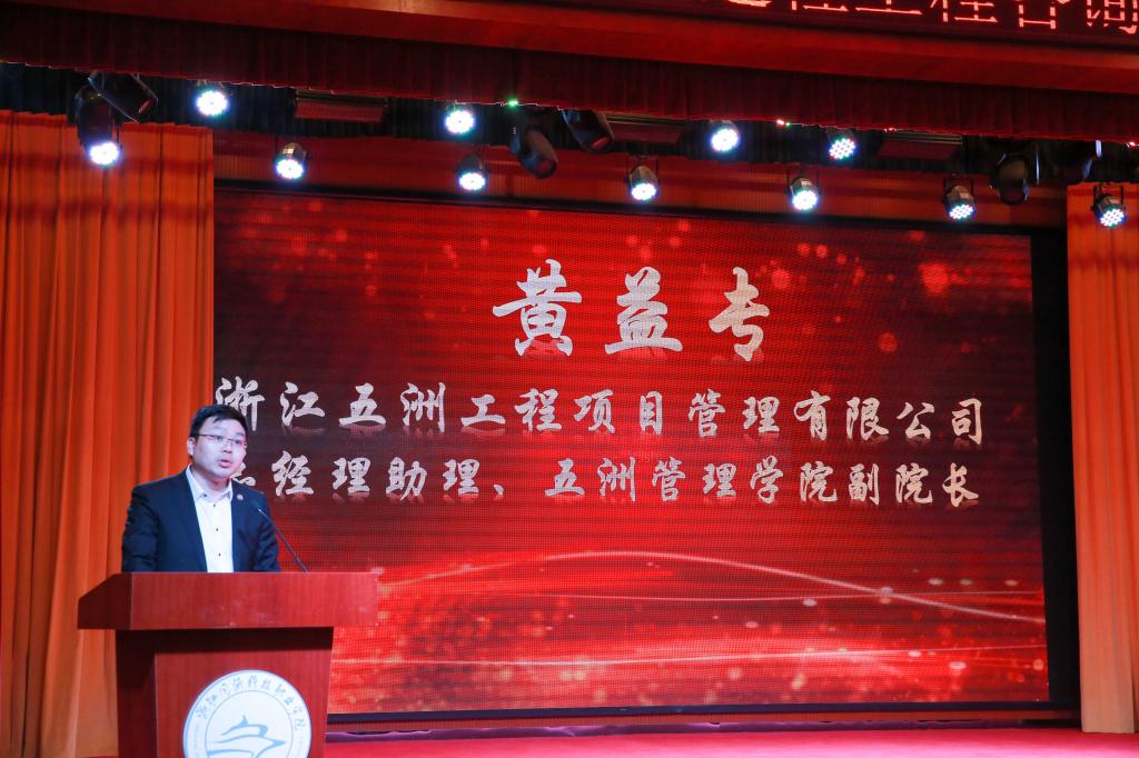 华堂焕彩,济济多士。11月12日下午,我校建筑工程学院和浙江五洲工程项目管理有限公司在瓯江楼水韵剧场举行双方党建结对暨2021全过程工程咨询管理改革实验班开班典礼。五洲管理党委书记、总工程师瞿龙,学校党委委员、纪委书记应芬,学校党委委员、副校长朱兆平出席。学校发展合作处、教务处负责人,五洲学院和建工学院相关人员以及师生代表100余人参与典礼。