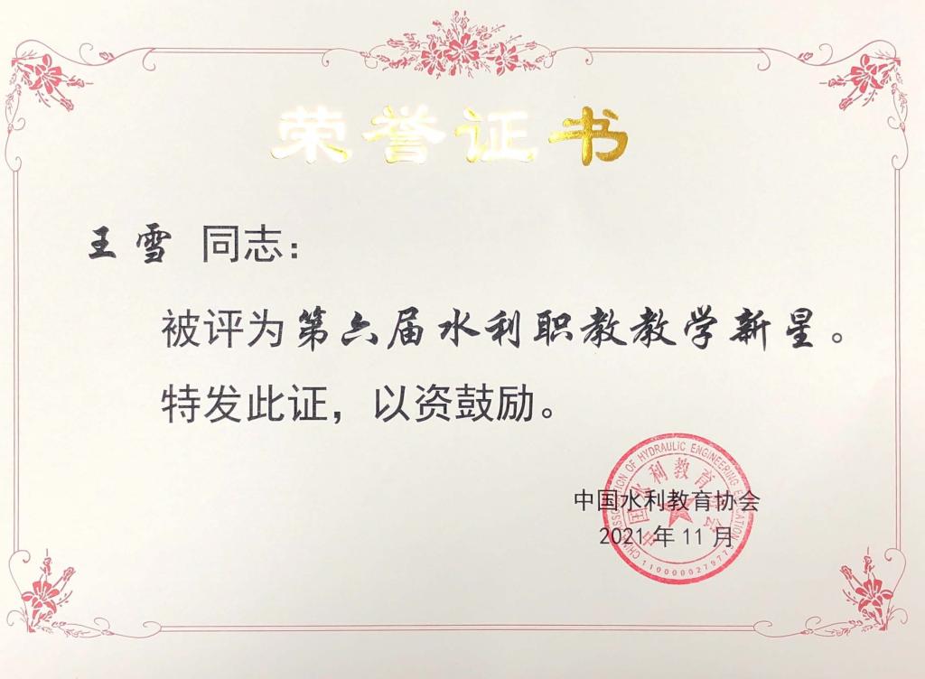 目前我校共有全国水利职教名师6人、职教新星5人为我校建设“双高”院校提供强有力的师资保障。