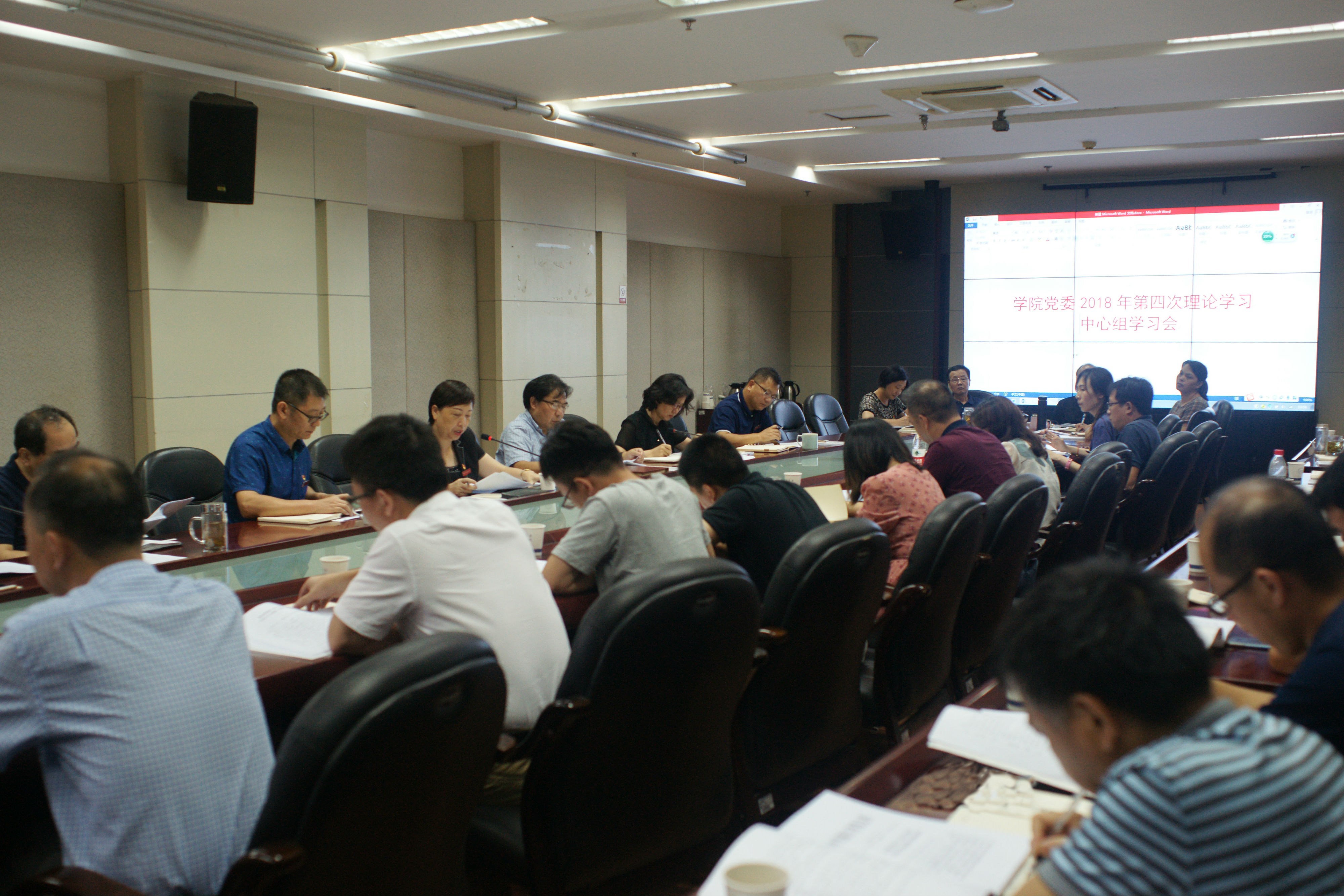 7月25日下午,学院党委召开2018年第四次理论学习中心组学习会。党委书记江影主持会议,全体院(校)领导、中层以上干部参加会议。