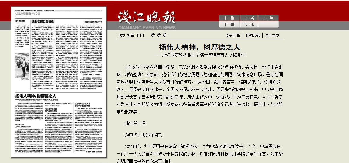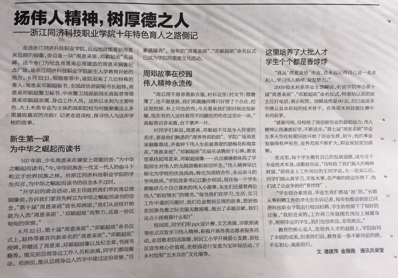 媒体关注:《钱江晚报》报道我院特色育人工作