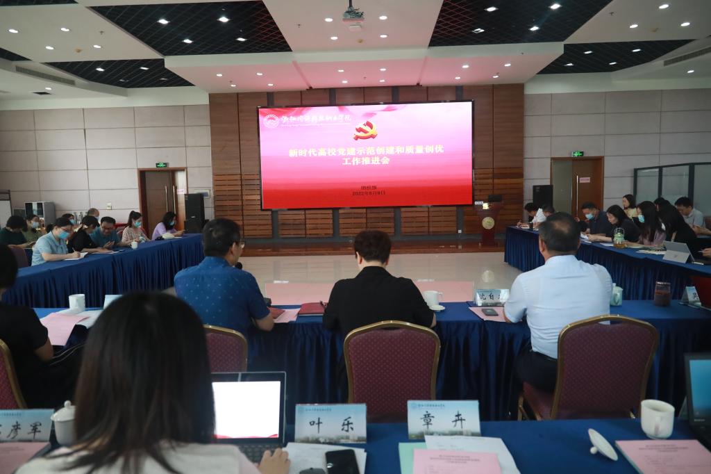 6月9日上午,我校在行政楼三楼多功能厅召开新时代高校党建示范创建和质量创优工作推进会。在校校领导均出席会议,各二级党组织书记、全体党支部书记、专职组织员参加会议。会议由党委副书记、副校长吴宏平主持。