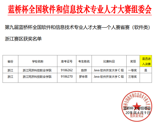 4月1日,第九届蓝桥杯全国软件和信息技术专业人才大赛个人赛浙江省赛在浙江传媒学院举行,来自全省43所高校近700名选手参加竞赛,我院5位同学参加了“Java软件开发大赛C组”。
