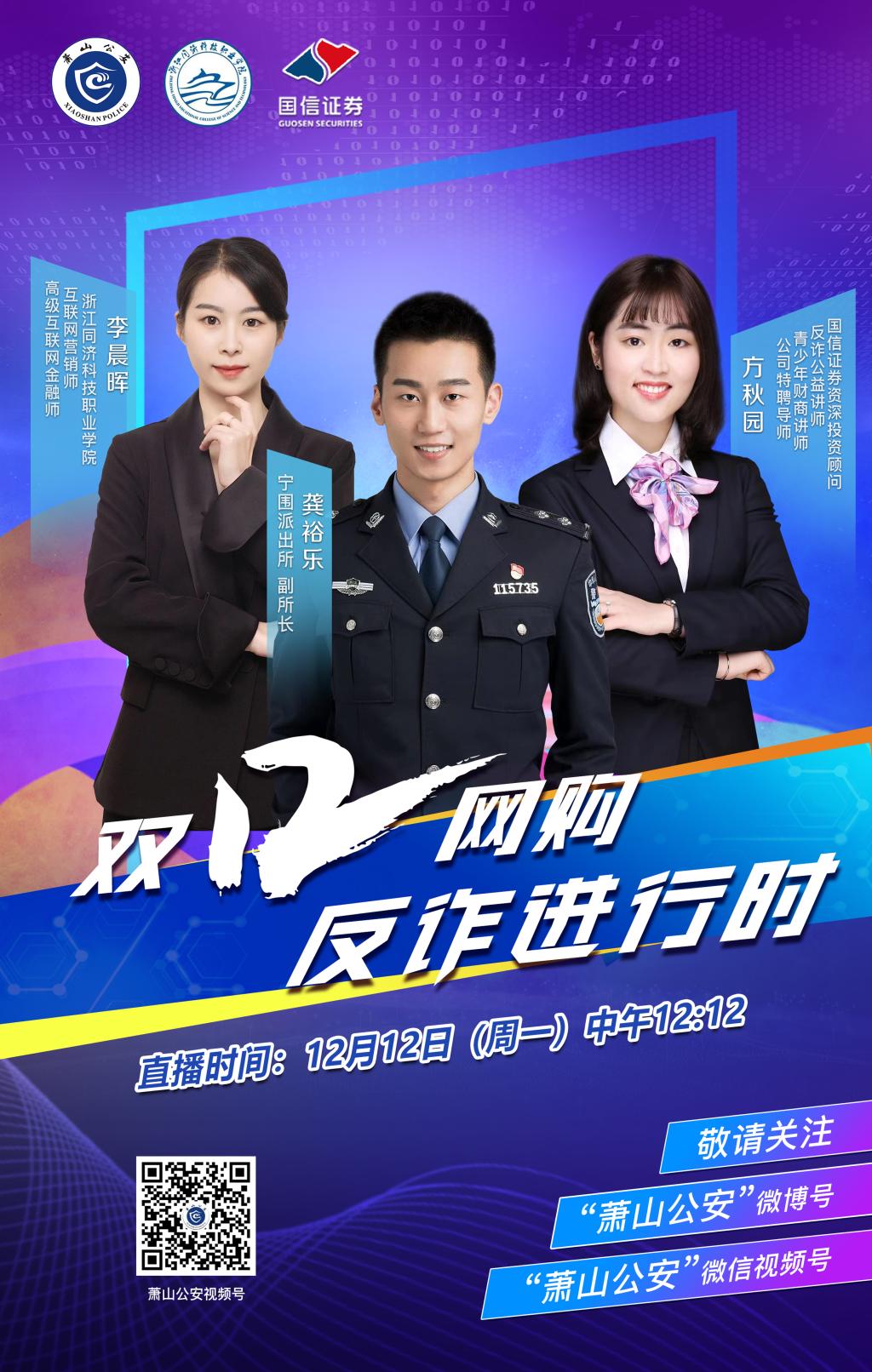 “双十二”购物节如约而至,电商平台的营销大战也进入了白热化,但是购物狂欢的同时,不法分子也瞅准这个“商机”。为进一步遏制电信网络诈骗高发态势,提高师生识诈、反诈能力,在浙江省反诈中心指导的指导下,学校保卫处、经信学院联合萧山公安分局、国信证券浙江分公司在我校开展“反诈双十二,你我不被骗”专场反诈直播。
