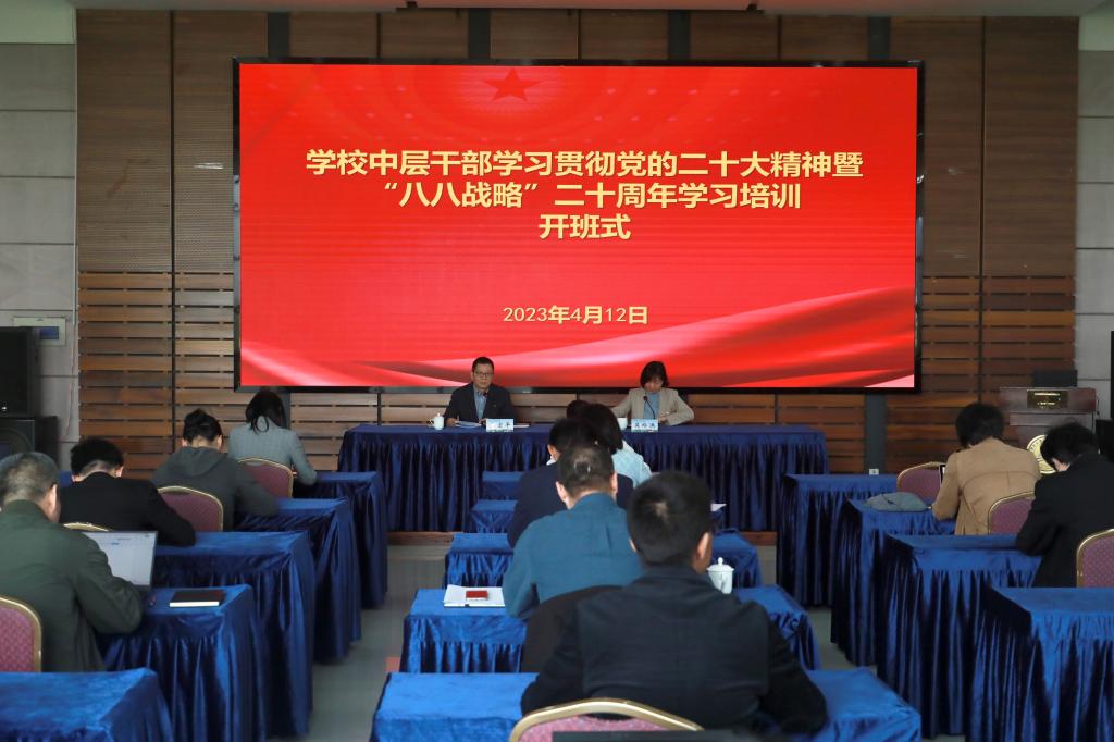 为深入学习贯彻党的二十大精神,深刻领会把握中国式现代化的深刻内涵和科学实质,根据省委组织部、省委教育工委要求,学校于4月至5月期间举办中层干部学习贯彻党的二十大精神暨“八八战略”二十周年学习培训。在开班式上,党委委员、组织部长吴玲洪介绍举办本次培训班的目的、任务、整体安排以及注意事项,传达学习水利厅党组关于进一步加强干部教育培训纪律要求,并强调要加强学风管理,严格培训纪律,通过培训切实提高政治站位,增强学习主动性和自觉性,推动党的二十大精神学深学透。
