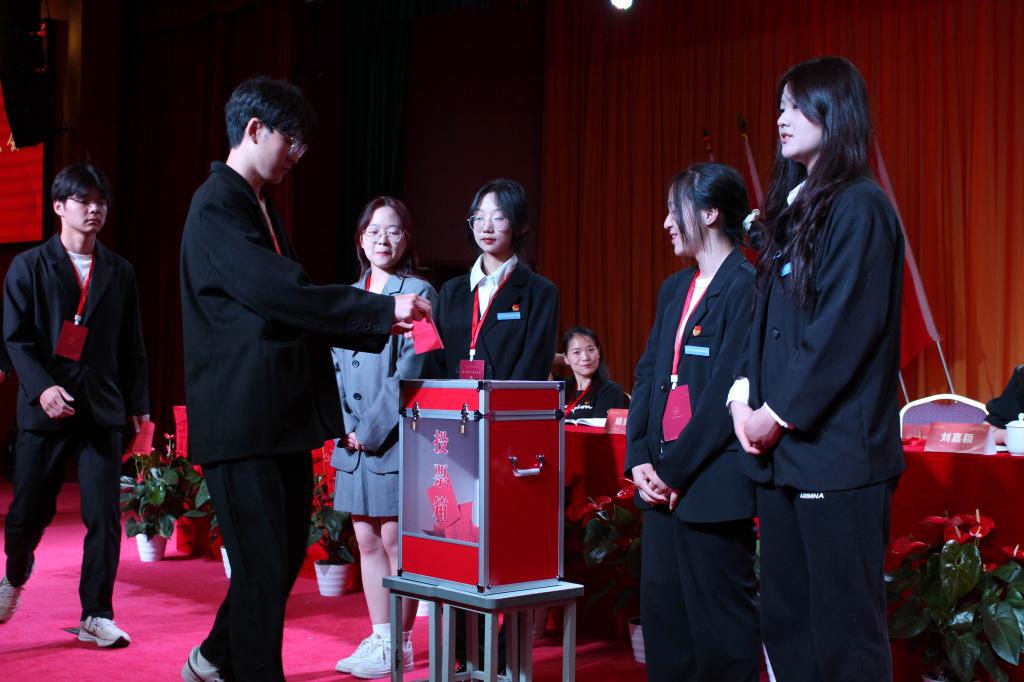 大会在庄严的国歌中拉开帷幕,大会执行主席、团委干事姚徐超主持大会并宣布开幕。大会听取并审议通过了题为《学习贯彻二十大团结奋进新征程团结同科青年在“两个先行”中唱响“我在窗口写青春”最强音》的工作报告,并通过无记名投票差额选举产生了周亦倩、马雨欣、张沿钧、金元元、吴优五位同学组成的第十届学生会主席团。会议在《中国共产主义青年团团歌》的歌声中圆满落幕!