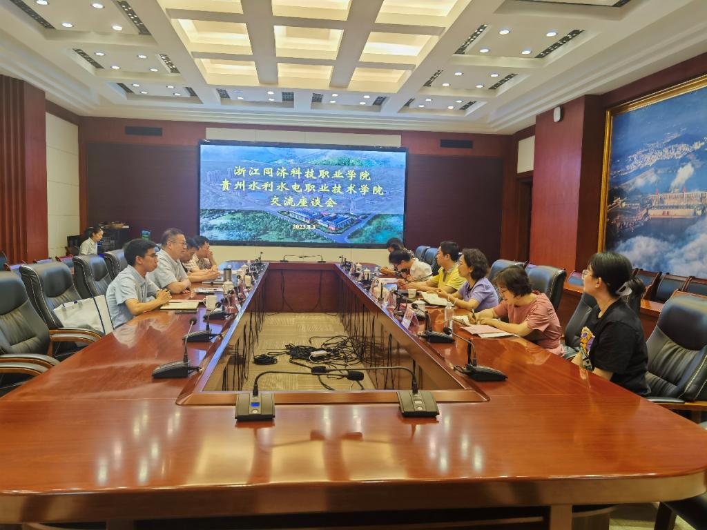 张勇书记对贵州水院的热情接待表示感谢,他介绍了我校的发展历程、办学情况,对贵州水院近几年在学生竞赛、节水型校园建设等方面取得的成就给予高度赞扬,希望以此次交流为契机,进一步加强双方沟通,相互学习,共同进步。朱兆平副校长介绍了我校的教育教学改革情况,希望两校在实训基地建设、技能竞赛、课程思政建设等方面加强合作,共促发展。随后,教务处、质量办等部门就具体业务开展了深入交流。