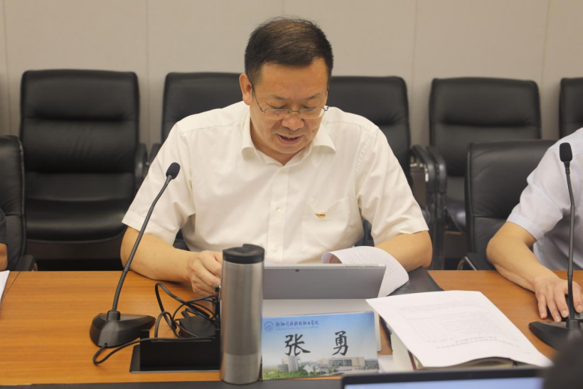 8月14日,学校党委召开理论学习中心组主题教育专题民主生活会学习会。党委书记张勇主持会议,学校领导班子成员、各部门及二级学院党政主要负责人参加会议。