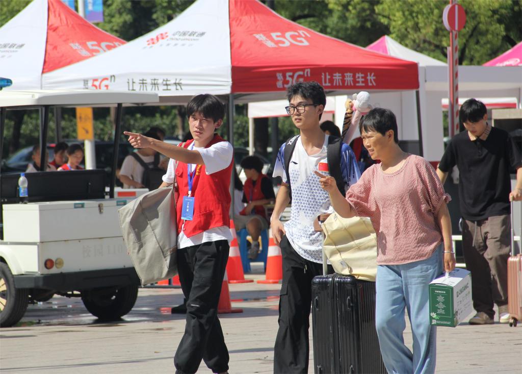 党委书记张勇,党委副书记、校长王卫标等校领导来迎新点欢迎新生及家长
