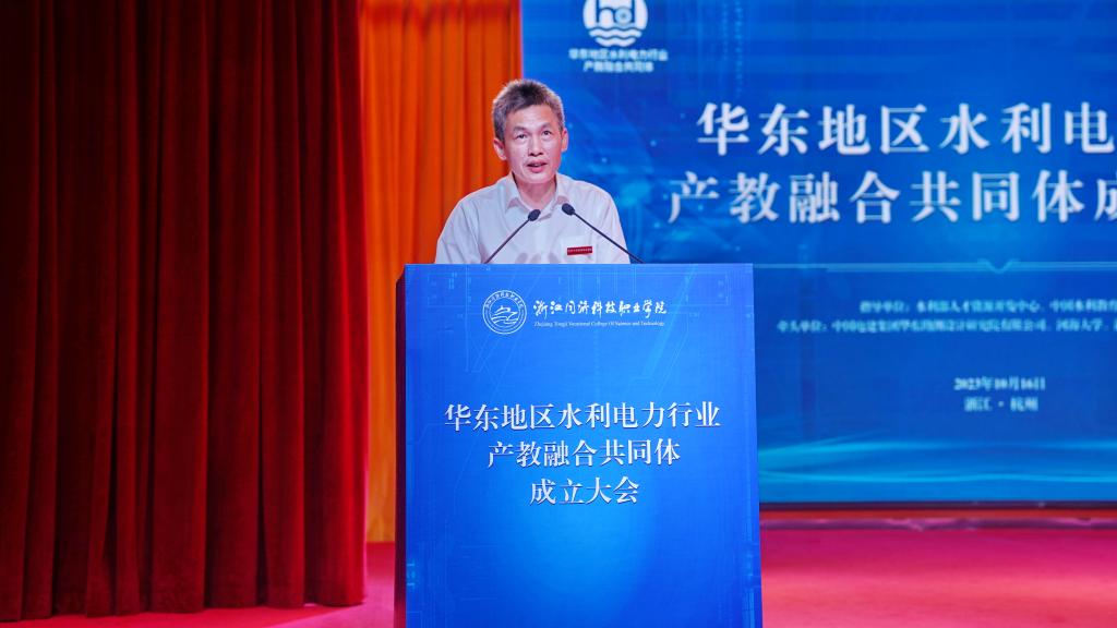 中国工程院院士王浩在讲话中对共同体的成立表示祝贺,指出共同体的成立,标志着华东地区水利电力行业产教融合站在了一个新起点,迎来了新的机遇,希望“共同体”充分发挥其核心作用,在推动水利电力行业高质量发展、拓展水利电力国际合作与交流等方面做出积极贡献。