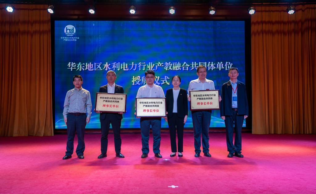 成立仪式上,水利部人才资源开发中心副主任孙斐等与会领导共同为“华东地区水利电力行业产教融合共同体”启动揭牌,并向首届理事会理事长单位、副理事长单位、理事单位、秘书长单位等授牌。