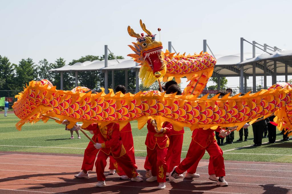 随着慷慨激昂的运动员进行曲,国旗方阵、特色方阵和各学院师生运动员方阵依次入场。水利学院以“水润赛场,‘利’展锋芒”为主题,结合龙年主题元素,以舞龙配合汉服传统舞蹈的表演形式,展现全院师生弘扬中华传统文化,献礼新中国成立75周年的蓬勃热情;建工学院以“建设伟大祖国,走向民族复兴”为主题,通过情景化的施工表演形式,搭建一座充满爱意的“建工连心桥”,展现师生投身民族复兴建设的蓬勃力量;机电学院以太极拳表演形式出场,红伞舞动,呈现出国旗造型,少年们带来青春奋斗主题演讲,彰显爱国情怀与青春活力;经信学院以“清风荷畅”为主题,歌舞表演清新自然,以饱满的热情展现青春的风采;艺设学院用武术与现代舞的碰撞,诠释着艺术的无限可能,彩带迎风扬,恰似惊鸿舞,热血满腔洒,筑起凌云志。