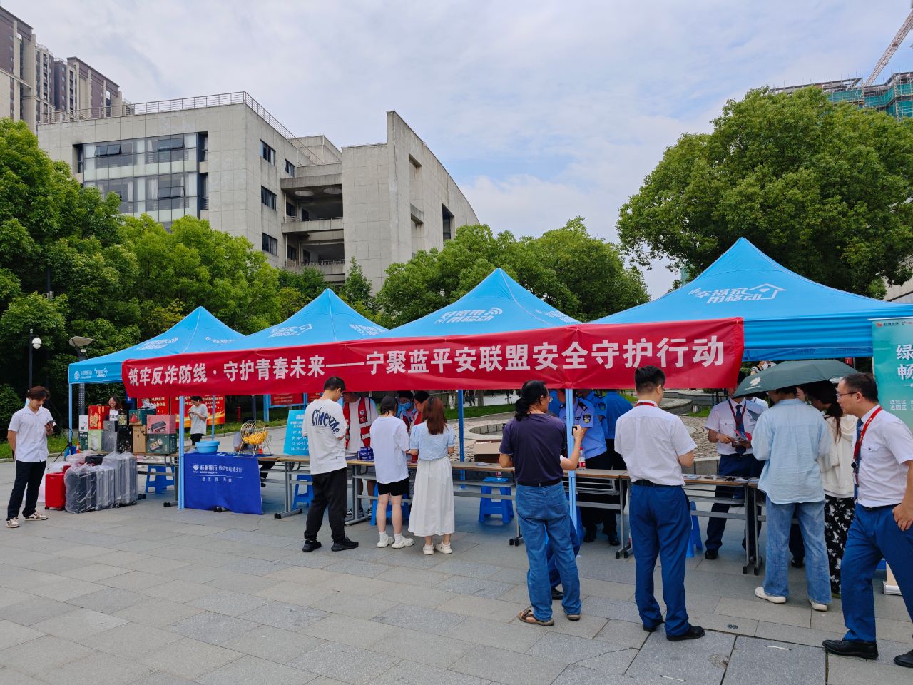 6月17日上午,为进一步提高学生反诈防骗能力,全面筑牢校园反诈防线,学校保卫处联合宁围派出所、钱江社区、杭州银行共同开展“筑牢反诈防线•守护青春未来——宁聚蓝平安联盟安全守护行动”。