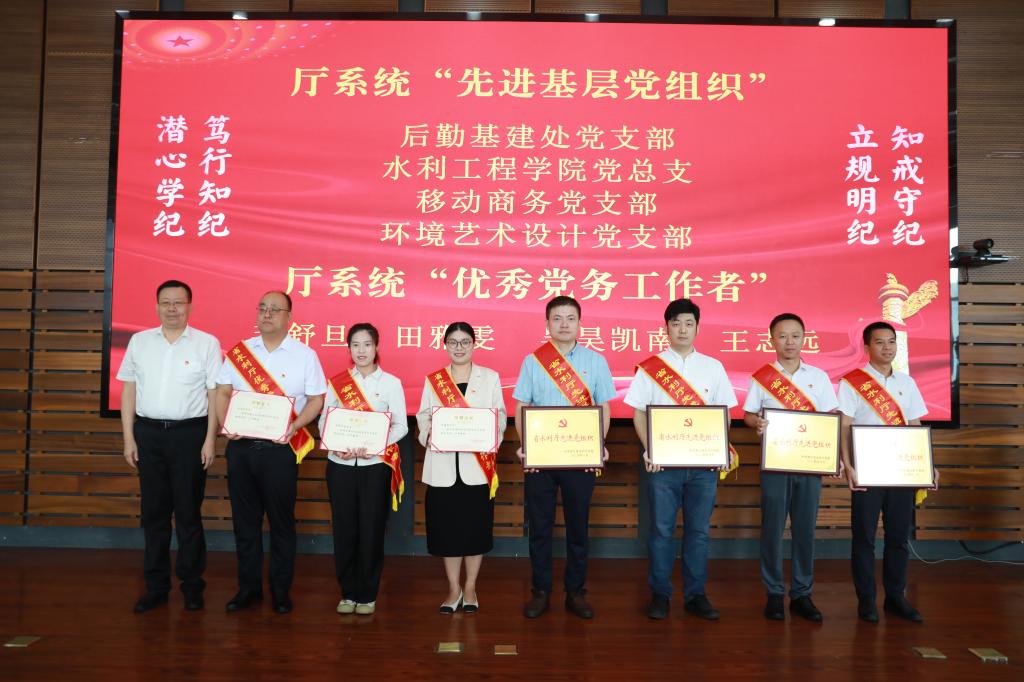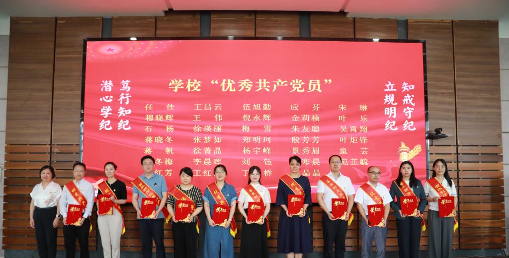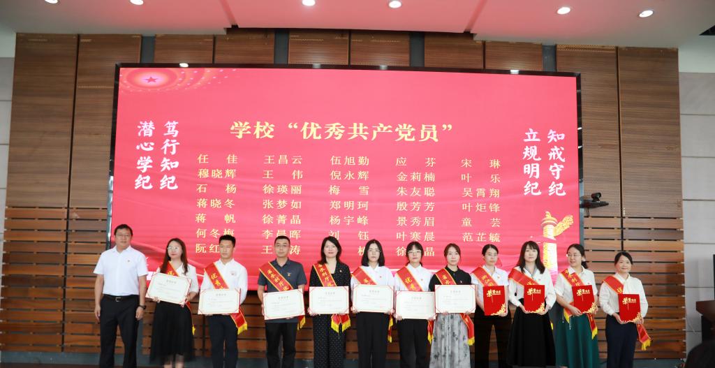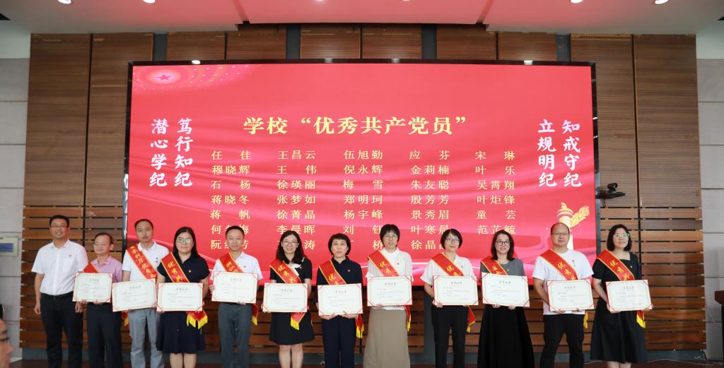 活动在全体齐唱国歌中拉开帷幕。党委书记张勇带领全体党员重温入党誓词,并为俞彩英同志颁发“光荣在党50年”纪念章。校领导为省直机关、厅系统、学校“两优一先”表彰对象颁发奖状、奖牌,三位优秀个人和先进集体代表作典型发言。