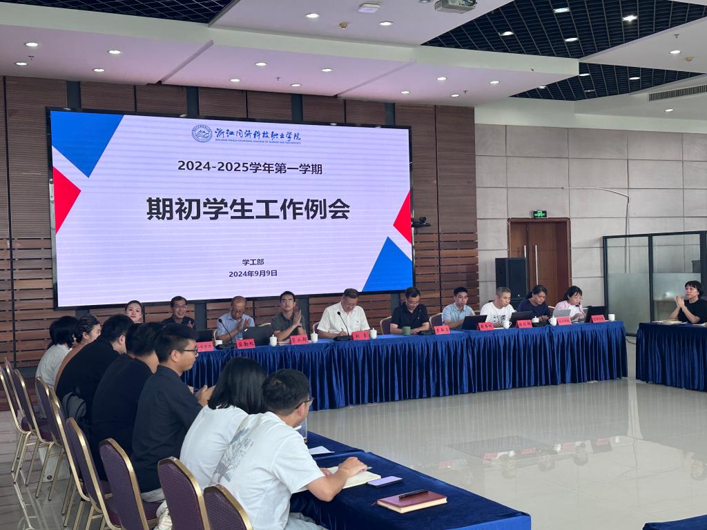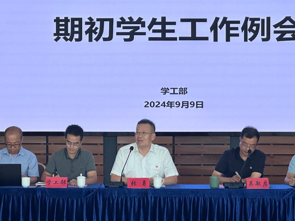 9月9日下午,学校召开2024—2025学年第一学期期初学生工作例会。学校党委书记张勇出席会议并讲话,党委委员、副校长吴敏启主持会议。各相关部门负责人、二级学院党总支负责人以及全体辅导员参加会议。