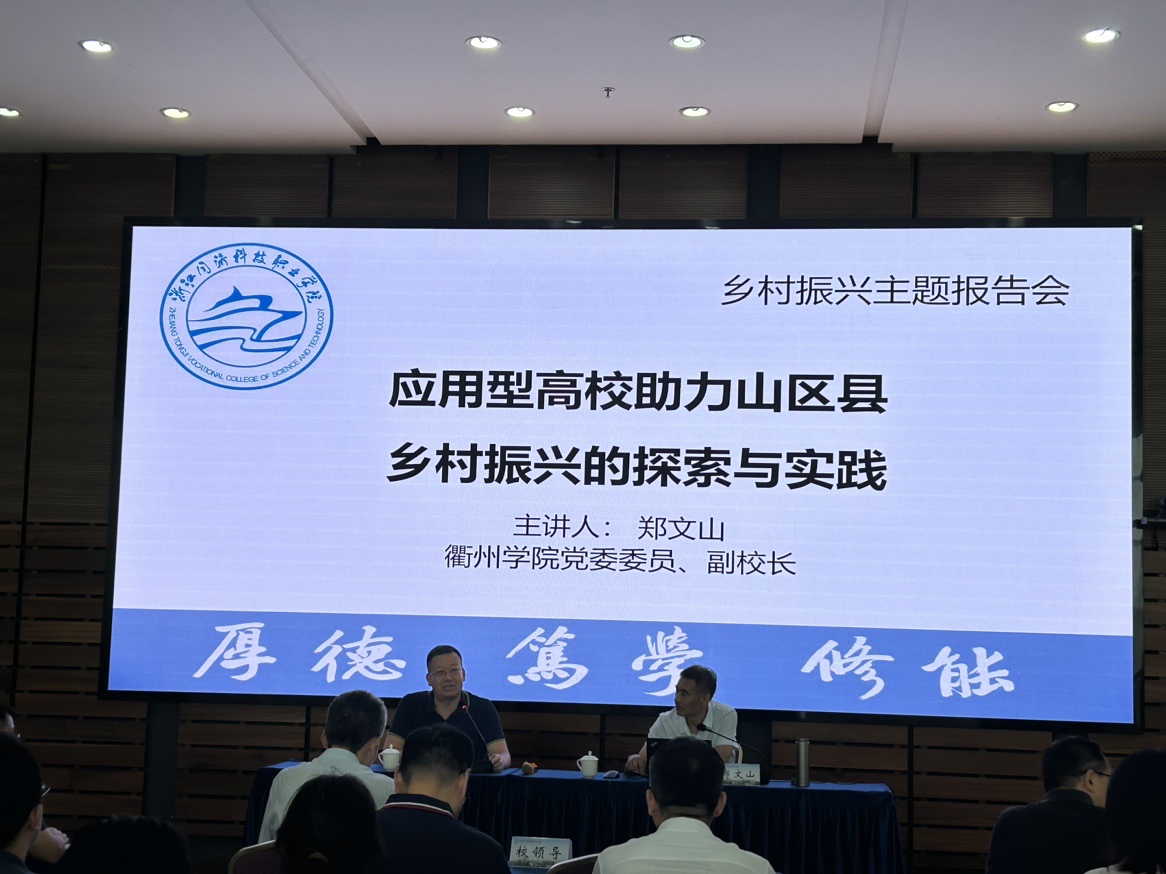 为深入学习贯彻习近平总书记关于“三农”工作重要指示批示,充分发挥学校专业特色,服务好产业发展、乡村振兴,日前,学校特邀衢州学院党委委员、副校长郑文山教授来校作《应用型高校助力山区县乡村振兴的探索与实践》讲座。讲座由学校党委书记张勇主持,全体校领导、中层干部以及二级学院骨干教师参加。