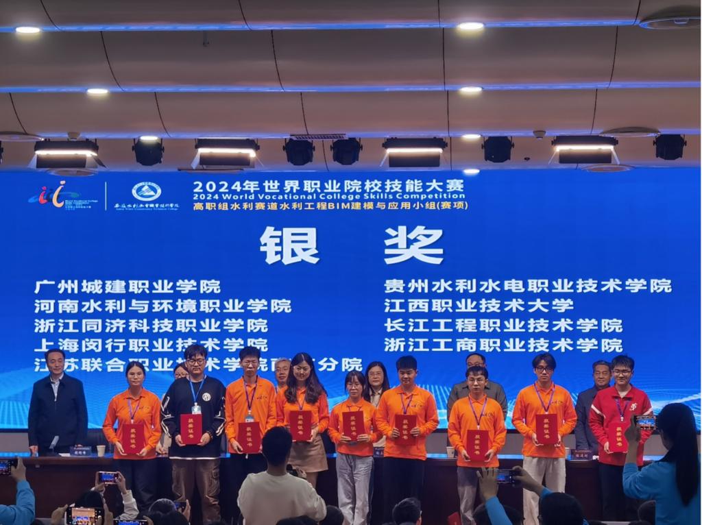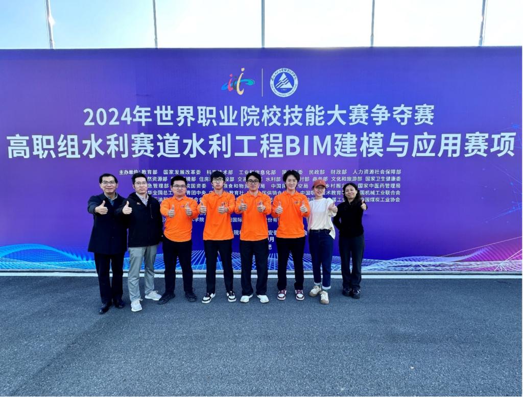 近日,2024年世界职业院校技能大赛总决赛争夺赛高职组水利赛道水利工程BIM建模与应用赛项在安徽成功举办。本次大赛吸引了来自全国26个省、自治区、直辖市的57支参赛队伍,200余名师生参与。经过激烈角逐,我校水利学院学生团队(宋昊泽、陈秉义、潘中天、赵轶凡)最终荣获银奖,创造了我校在该赛项中的历史最佳成绩。