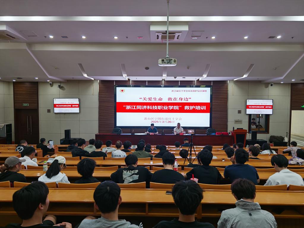 为增强师生应急救护能力,3月26日,学校成功举办“关爱生命,救在身边”应急救护专题培训活动。本次活动特邀萧山区红十字会资深救护培训师李波担任主讲,学校党委书记张勇,党委委员、副校长吴敏启到场指导,百余名师生参与培训活动。