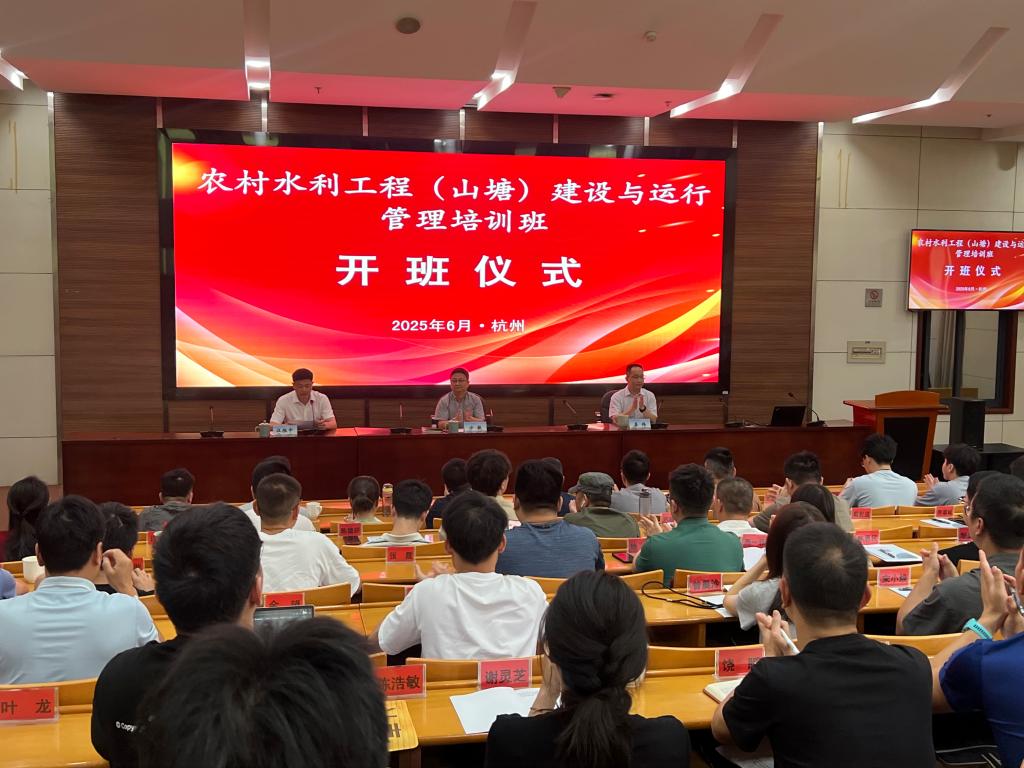 为提升农村水利工程建设与运行管理水平,推动农村水利高质量发展,6月4日,我校承办的2025年农村水利工程(山塘)建设与运行管理培训班顺利开班。省农村水利管理中心主任方敏,学校党委委员、副校长姜伟出席开班仪式,省农村水利管理中心副主任汪胜中主持。
