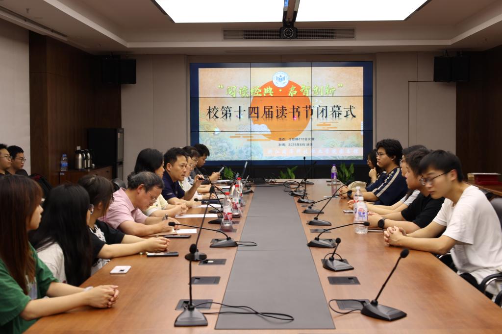 6月18日,学校第十四届“阅读经典·启智创新”读书节闭幕式在行政楼210会议室举行。党委委员、工会主席吴玲洪出席活动。闭幕式由图书馆馆长主持。
