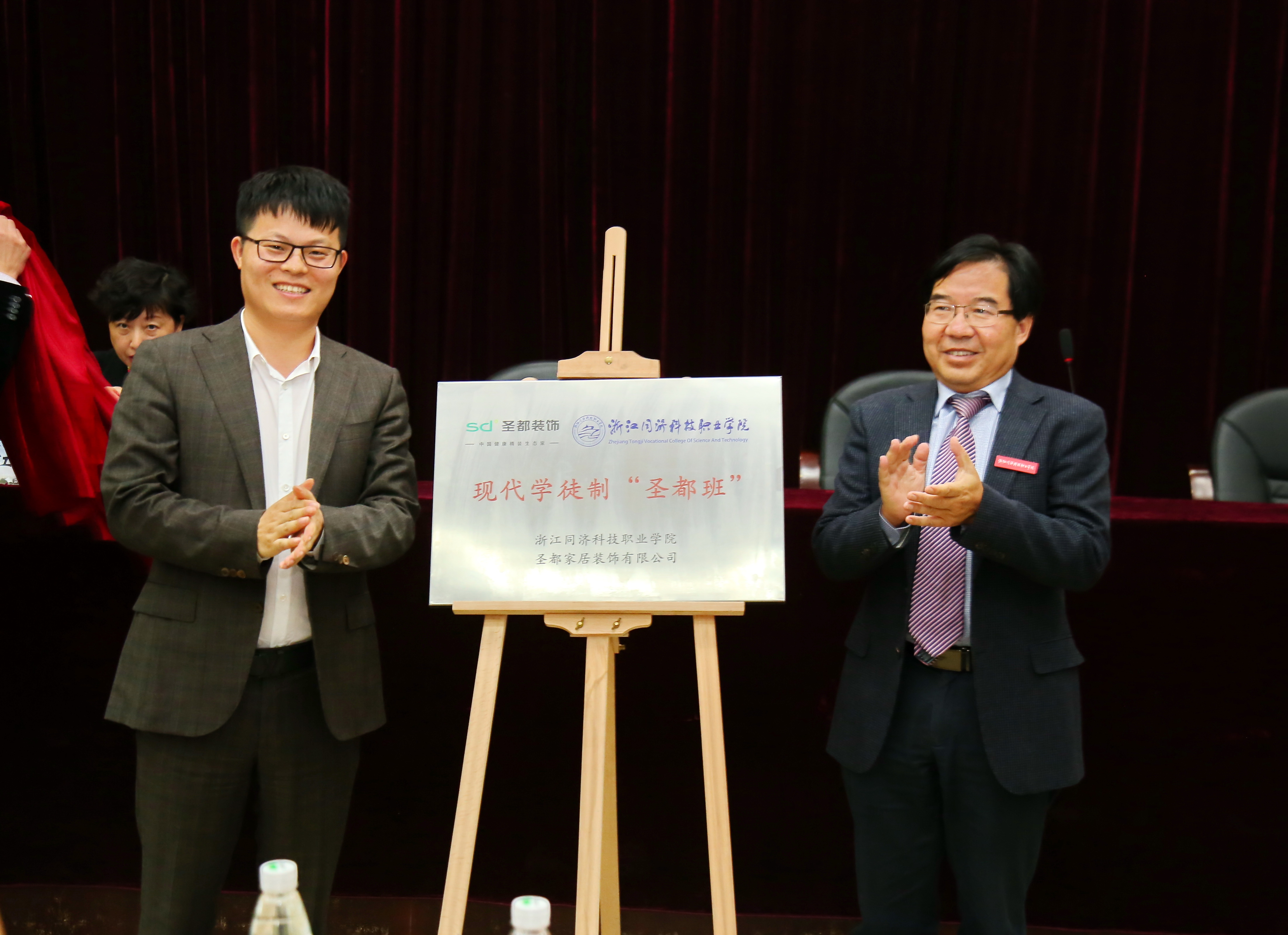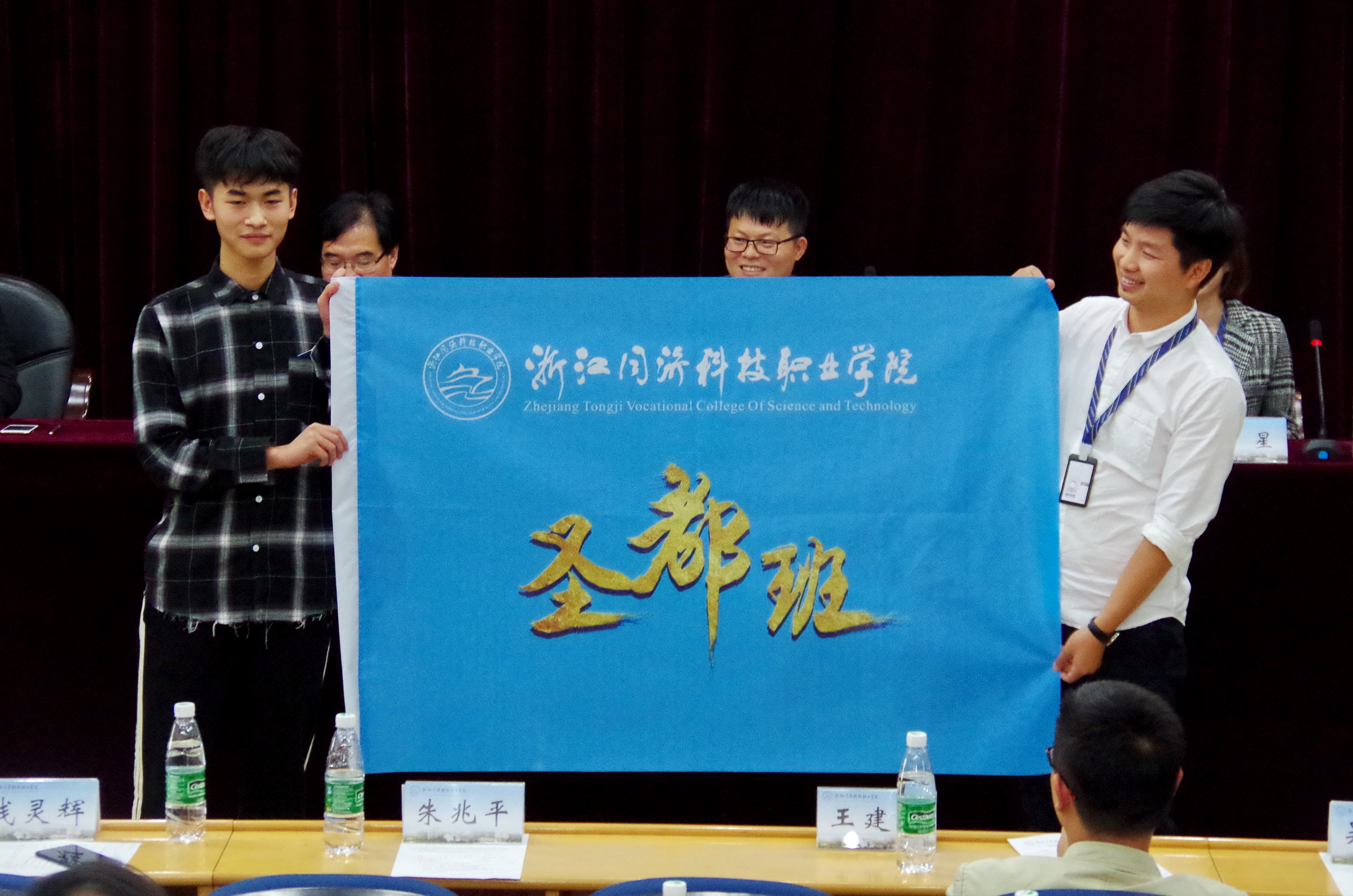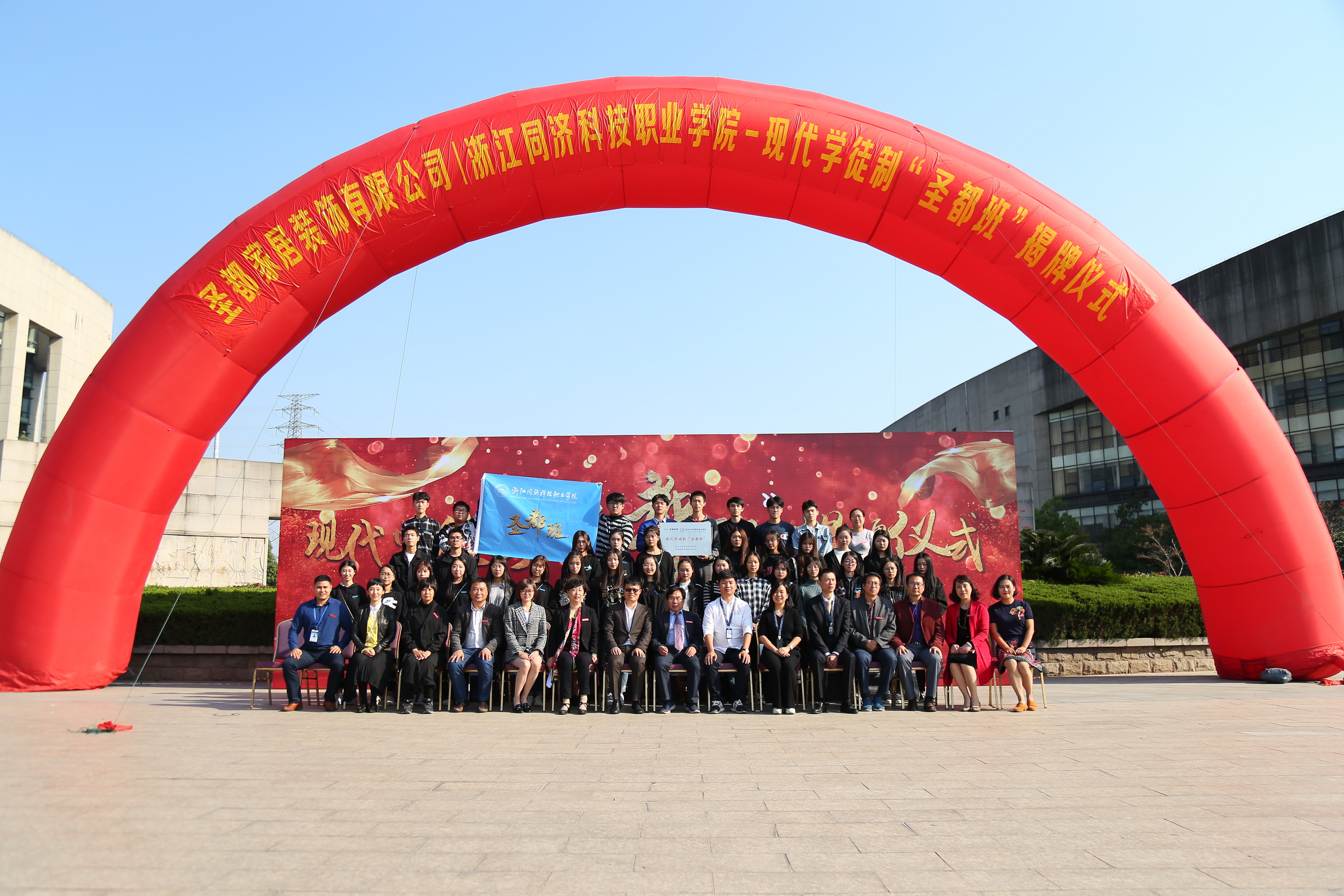 最后,梁国钱院长和颜伟阳董事长共同为“圣都班”揭牌,并向该班级授牌、授旗。