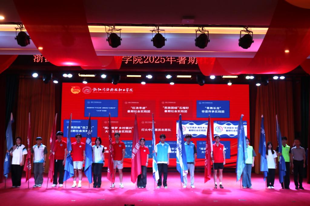 仪式上,2024年浙江省暑期社会实践优秀调研成果二等奖获奖团队进行成果展示。他们以《从无可奈“河”到“百年好河”——幸福河湖建设的实践探索与创新路径》为题,分享了实践经验和创新成果,为今年的实践团队提供了宝贵借鉴。今年,学校共组建13支暑期社会实践团队。校团委为各实践团队授旗,并签订实践安全责任书。实践团队学生代表庄严宣誓,表达了以实干践行使命、展现青年担当的坚定决心。