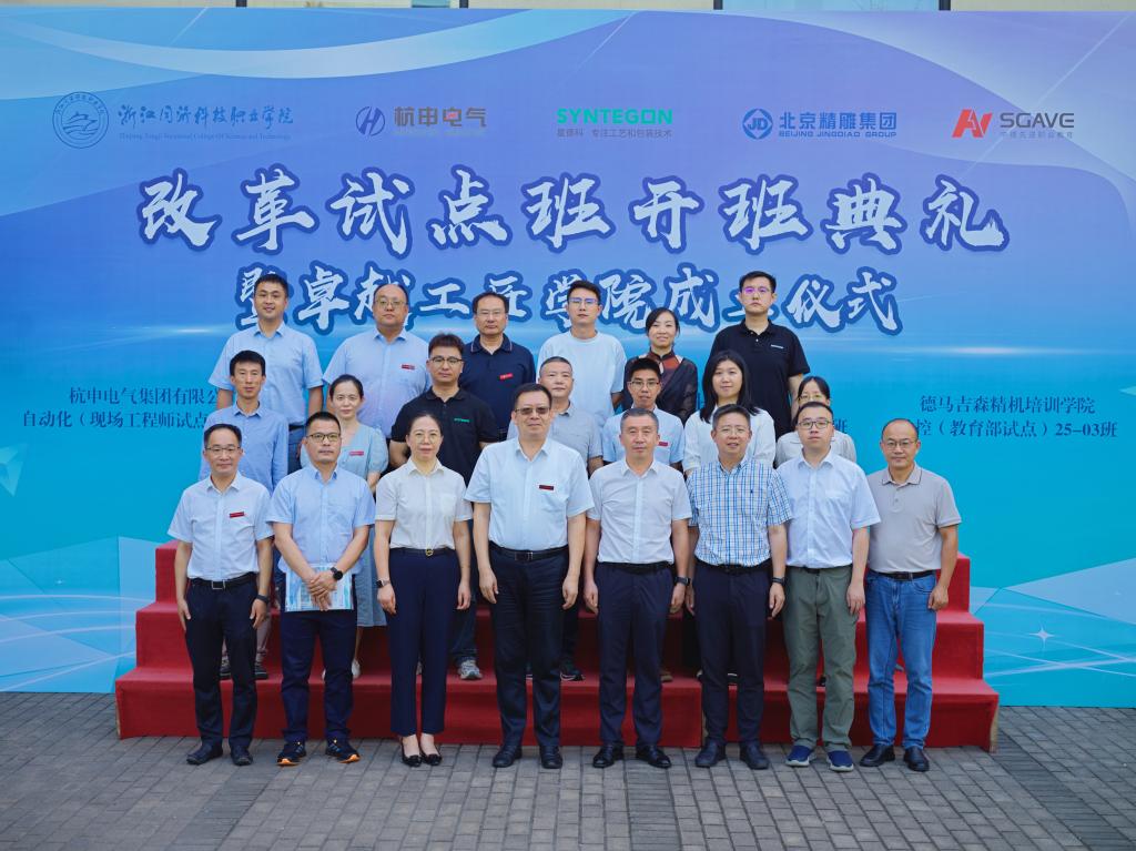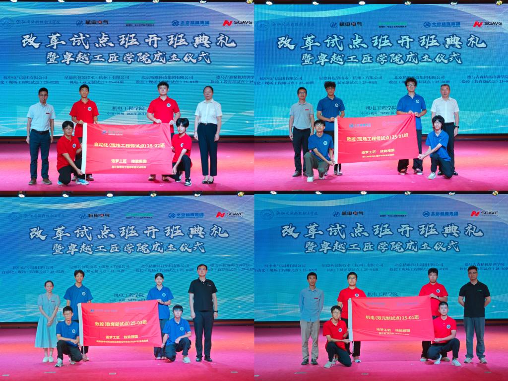 10月15日,学校在瓯江楼水韵剧场举行第四届改革试点班开班典礼暨卓越工匠学院成立仪式。学校党委书记张勇,党委委员、副校长姜伟出席会议。杭申集团有限公司、浙江江能建设有限公司、北京精雕科技集团有限公司等十余家合作企业负责人,学校相关部门(单位)负责人、教师代表及2025级改革试点班全体学生参加。会议由姜伟主持。