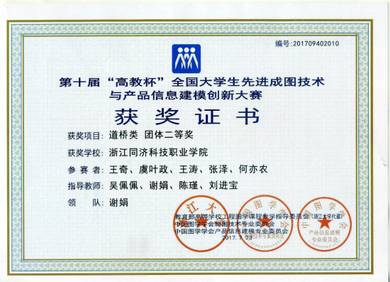 2017年7月21日至24日,第十届“高教杯”全国大学生先进成图技术与产品信息建模创新大赛在兰州交通大学举行,该项赛事由教育部高等学校工程图学课程教学指导委员会、中国图学学会产品信息建模专业委员会联合主办,来自200多所高校的2900余名学生参加了比赛。我院水利工程系选派由10名学生组成的2个代表分别参加了本届大赛水利类和道桥类两个专业类别的比赛。经过激烈角逐,我院2支代表队分别斩获水利类团体二等奖和道桥类团体二等奖的好成绩,10名参赛学生选手全部获奖,其中,个人全能一等奖2项、个人全能二等奖4项、建模单项一等奖1项、建模单项二等奖1项、尺规单项一等奖1项和尺规单项二等奖3项。