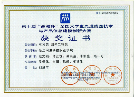 据了解,这是我院学子在该项赛事中,连续第四年通过与985、211重点本科高校及国家示范、骨干高职院校的学生同台竞技获得水利类团体奖项,今年还在道桥类专业类别竞赛中脱引而出获得团体二等奖,实属不易。宝剑锋从磨砺出,梅花香自苦寒来。近年来,学院水利工程系依托省级优势特色专业建设项目,通过整合教学内容、完善实训条件、加强课程团队建设、培育学生社团等系列措施加强专业核心技能课程建设,成效显著。通过近些年的培育发展,目前,水利工程制图社已在成员选拔、技能训练、参赛组织、社团活动等方面初步形成一套较为健全的社团管理制度,通过“以点带面、以赛促教、以赛促学”等方式有力的促进了学生专业技能水平的提升,磨砺了技能参赛水平。
