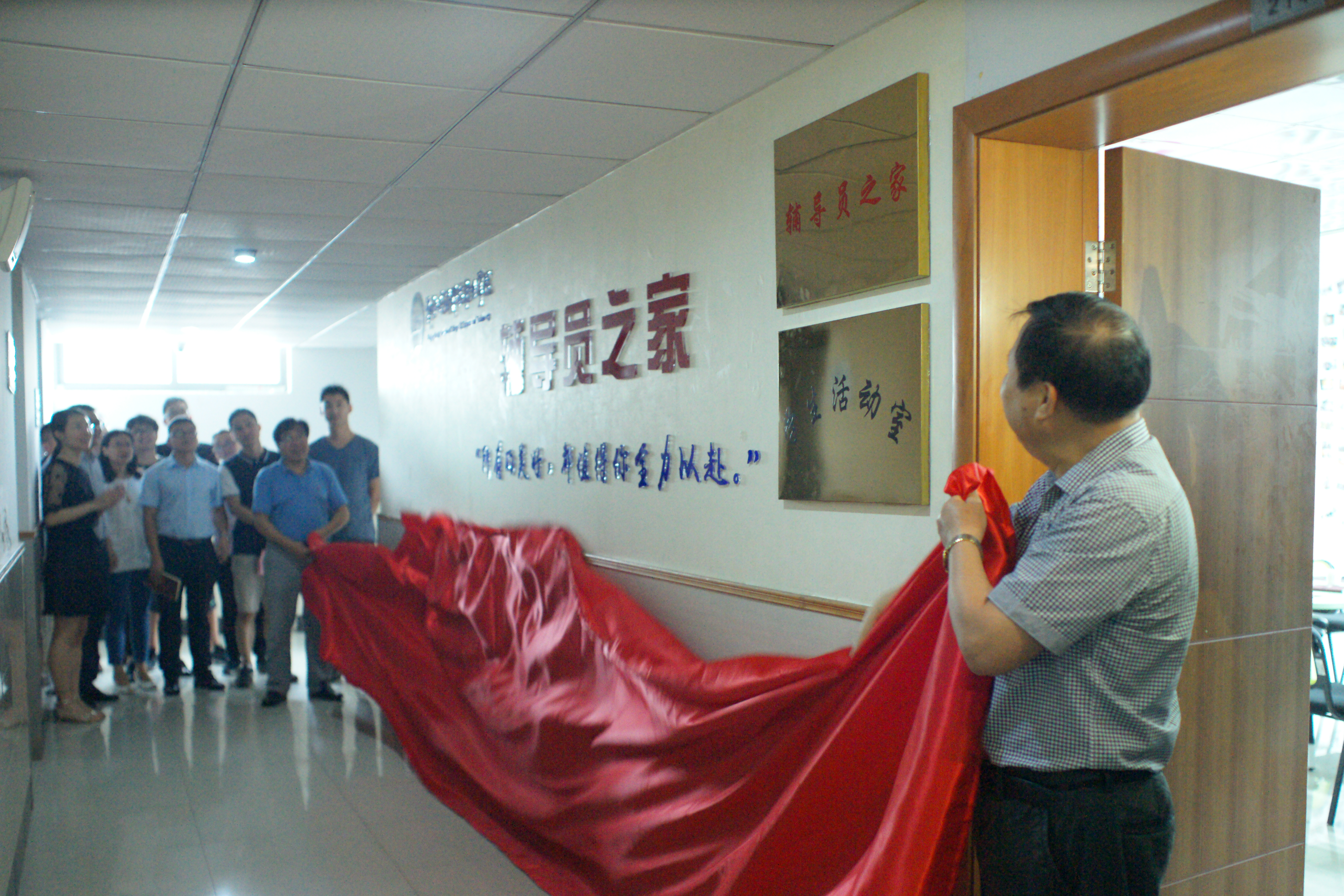 6月21日上午,筹建已久的“辅导员之家”终于揭开了神秘面纱。“辅导员之家”作为辅导员活动、交流、成长的一个重要平台,作为辅导员专业化、职业化能力提升的重要载体,在学院领导的关心支持助推下落成。学院党委书记丁坚钢、院长梁国钱、副院长吴宏平出席了仪式并揭牌。出席仪式的还有学工部、后勤部门负责人、各系党总支书记和全体辅导员。