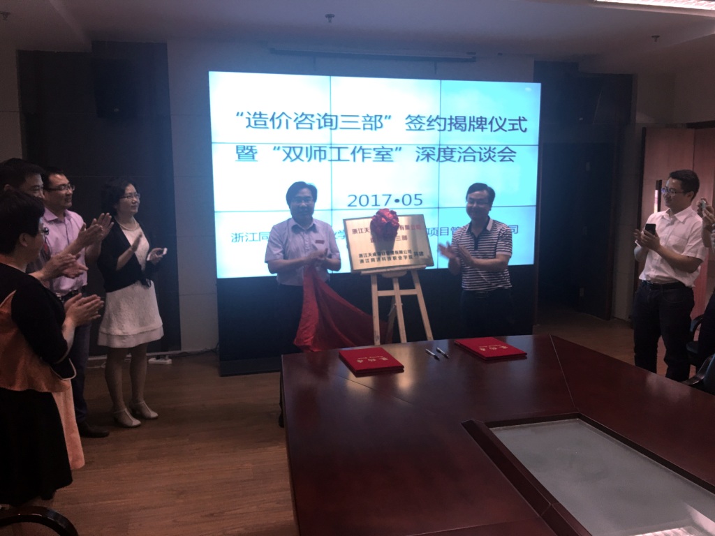 学院与浙江天成项目管理有限公司签订校企合作协议暨校内双师工作室揭牌仪式
