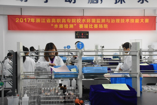 4月8日至9日,由浙江省教育厅主办,我院承办的2017省高职高专院校技能大赛暨全国职业院校技能大赛“水环境监测与治理技术”赛项选拔赛在杭州举行。来自金华职业技术学院、杭州职业技术学院等全省9所高校的40余名选手进行了激烈比拼。最终,我院的两支代表队(黄玉婵、俞思静、傅江悦、徐勇、刘荣权)分别包揽了本赛项水质检测项目、水处理设计项目、水处理操作项目三个项目及团体总分一等奖。下个月,本次比赛选拔出的选手将作为我省参赛代表,参加全国职业院校技能大赛“水环境监测与治理技术”大赛。