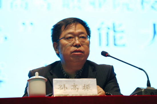 水利部人事司孙高振副司长讲话。孙副司长提出,水利部历来重视技能人才培养和开发工作,采取了一系列有效措施,大力推进水利技能人才队伍建设。特别是‘十三五’水利人才规划中,明确提出要建设一支数量众多,技艺精湛、素质优良的技能人才队伍。同时,他还对大赛提出几点意见。一是要以赛促教、教赛结合、不断创新、改革人才培养模式。二是要加强产教融合,努力培养高技术人才,凝聚行业的力量,促进院校的改革发展,增强水利职业教育的吸引力,保障水利人才队伍建设。三是要总结以往大赛经验,借此推动全国水利职业技能大赛开放新台阶。