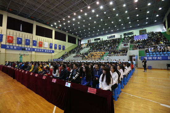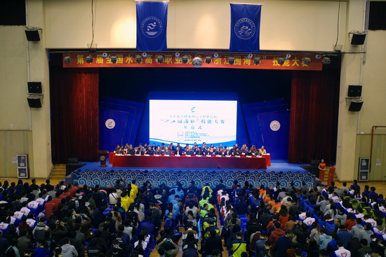 11月3日上午八点三十,第十届全国水利高等职业院校“浙江围海杯”技能大赛开幕式在同科职院举行。水利部原部党组成员、中国水利教育协会原会长周保志,水利部人事司副司长孙高振,水利部人事司原巡视员、中国水利教育协会副会长陈自强,浙江省省委教育工委委员、教育厅副厅长朱鑫杰,浙江省水利厅党组成员、副厅长冯强,中国水利教育协会会长彭建明,水利部人才资源开发中心、职业技能鉴定指导中心主任,中国水利教育协会副会长陈楚,水利部人事司人才与培训处处长孙斐,浙江省围海控股集团有限公司执行总裁张子和以及各参赛院校领导、嘉宾和参赛选手等700余人参加了开幕式。开幕式由中国水利教育协会秘书长王韶华主持。