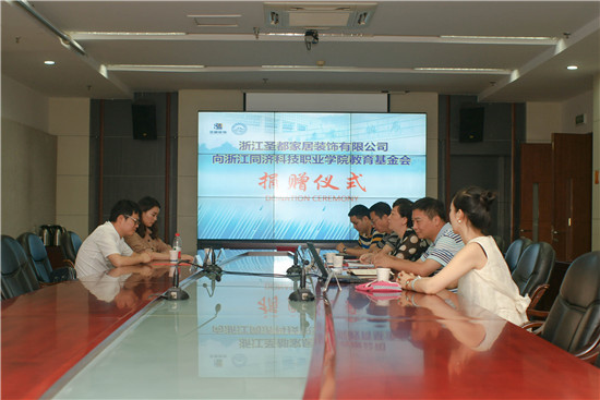 江影书记首先对浙江圣都董事长颜伟阳一行的到来表示热烈的欢迎,并感谢浙江圣都公司多年来对学院的支持;对浙江圣都企业文化的内涵创新、社会公益活动的丰富多彩表示认同和赞赏;表示公司所捐赠的教育基金将严格按照协议执行,同时也希望与浙江圣都公司长期、深入的合作,达到双方互利互赢。