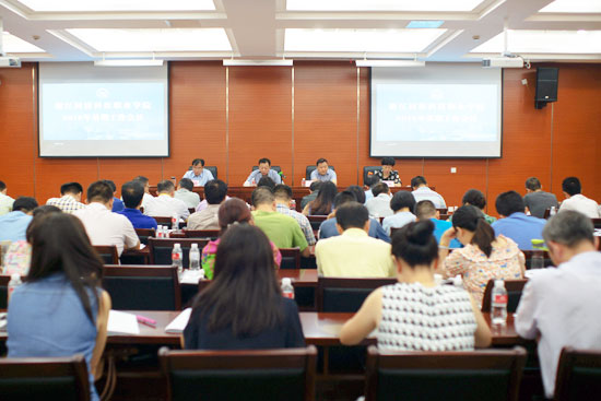 梁国钱院长作了题为《深化改革 强化特色 切实加快学院内涵建设》的工作报告。报告总结了今年上半年学院工作,提出下半年学院将根据省教育厅 “三个抓手”(一是“十三五”期间培养150个优质专业和200各特色专业;二是打造15所优质高职高专院校;三是全面开展教学诊断和改进工作)重点做好以下几项工作。一是审时度势、深入研判,全面启动教学“诊改”机制建设。抓好内部质量保证体系诊断与改进工作,推进教学业绩考核、权力提升综合竞争力。二是科学定位、凸显特色,继续做好专业建设工作。对应以专业为导向的高考招生制度,强调专业建设要“突出优势、强化特色、做精做强”。三是注重改革、提升质量,稳步推进课堂创新。引入新型评教系统,改进激励评价机制,积极推进国际合作办学等,努力实现人才培养和使用的无缝对接。四是加快基建、完善配套,进一步改善办学条件。五是发挥优势、创新模式,纵向推动校企双方渗透性融合。六是强化责任、提升水平,切实加强干部教师队伍建设。七是创新驱动、紧贴行业,积极提升社会服务能力。八是以生为本、强化育人,开创学生工作新局面。九是细化管理、完善保障,营造良好校园氛围。