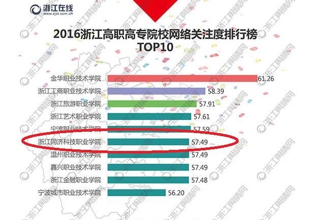 6月16日,浙江在线舆情中心发布《舆情数读:谁是浙江“网红”高校?》文章。根据中心数据统计,截止6月15日,我院2016年网络关注度在全省高职高专院校中排名第六。根据文中数据来源说明,新媒体数据占排名结果的50%权重,此结果充分说明我院新媒体建设已初有成效,对推动学院网络文化建设起到了重要作用。