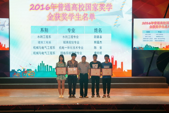 临别,院长梁国钱向毕业生提出了几个建议。一是正视自我,自信而为。望大家在大众创新、万众创业的新常态下,充满自信,相信通过自己的努力,日后所取得的成就不会比任何名牌大学的学生有半点逊色。二是坚韧不拔,勤奋努力。大学生活的结束,仅仅是漫漫人生路中的一个逗号,在今后的工作和生活中还有太多的未知和挑战。作为同济学子,希望大家能铭记学院“厚德、笃学、修能”的校训,以开阔的心胸、坚韧的品质和拼搏的精神,实现自身的价值。三是心怀感恩,饮水思源。“慈母手中线,游子身上衣”,母校永远是大家的港湾,是你们的家。作为校友,你们就是母校宝贵的财富,是母校办学成就最好的体现。典礼上,院领导分别向获得国家奖学金、省级优秀毕业生荣誉的毕业生颁奖,为各毕业班发放毕业证。最后,典礼在班主任给毕业生祝语的视频《听,离别的声音》及大合唱《当》的歌声中落幕。