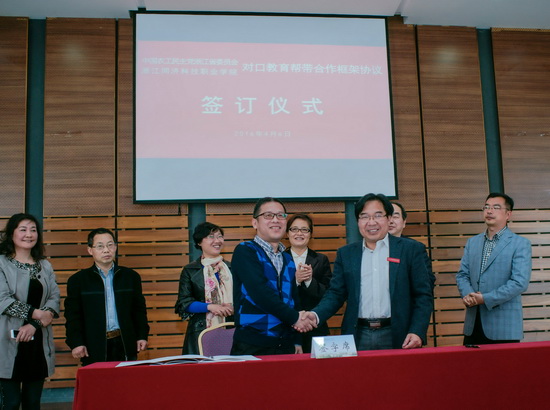 仪式上,梁国钱院长与农工党浙江省直四高校支部的主委共同签订了《对口教育帮带合作框架协议》。与会的学院相关职能部门及各系负责人和帮带教育专家团也在随后的对口交流中达成了学术合作、竞赛指导等多个领域的合作意向。