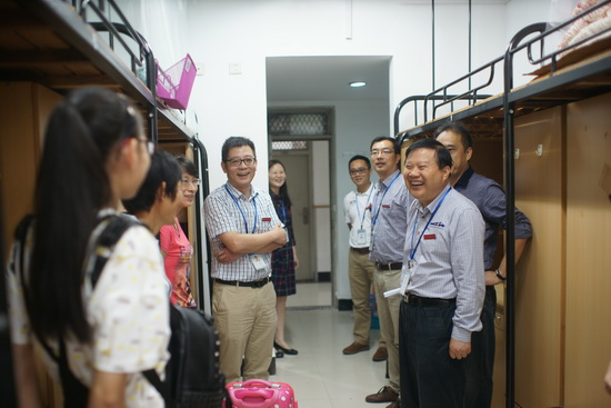 迎新期间,我院党委书记丁坚钢、院长梁国钱等院领导分别至迎新现场进行检查和指导,还在相关部门负责人陪同下到新生宿舍看望新生,希望新生尽快独立起来融入新环境,并与陪同前来的新生家长亲切交流。