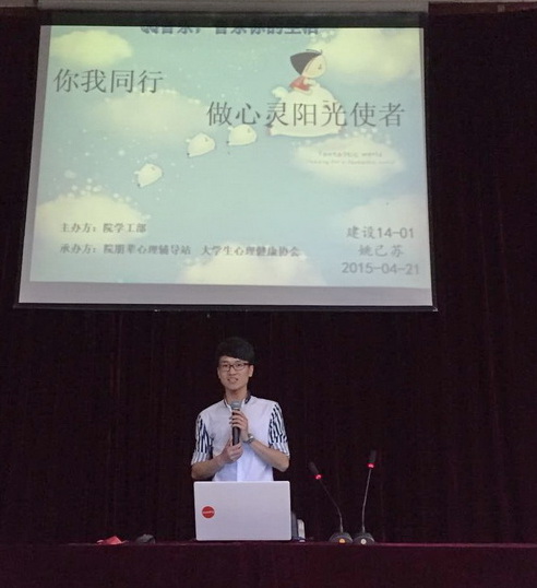 4月29日下午,我院2015年阳光使者风采展示大赛在图书信息中心报告厅举行。本次大赛旨在挖掘我院心理骨干的内在潜能,宣传积极阳光的精神理念,展现我院心理骨干阳光、自信、分享和乐于奉献的风貌,同时丰富同学们的课余生活。本次比赛的评委由学院的专兼职心理健康教师担任,来自各系推送的16名阳光使者参加了比赛,现场200余名同学为参赛选手加油助威。