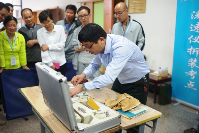 开幕式结束后,冯强、葛平安等出席开幕式的领导还现场观摩了选手们进行了水文勘测工实际操作技能比赛热身训练。