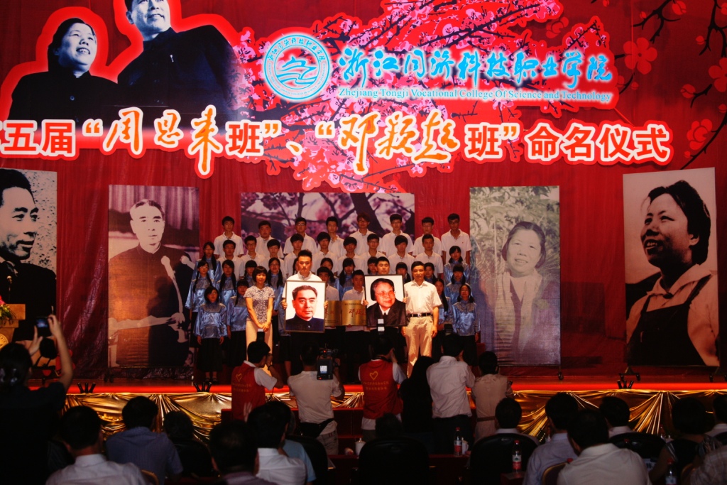 6月18日,全国高职院校、民办院校“周恩来班”校长论坛暨学院第五届“周恩来班”“邓颖超班”命名仪式在学院举行。活动邀请了周恩来邓颖超生前秘书、全国政协原副秘书长赵炜、周恩来邓颖超生前卫士、中央警卫局原副局长高振普、周恩来侄女、中国新闻社原副社长周秉德、中央文献研究室原室务委员、第二编研部原主任廖心文、《数理天地》杂志社社长、周恩来侄孙周国镇等周恩来、邓颖超生前身边工作人员、亲属、全国人大老干部局局长丁玉贤、省水利厅副厅长蒋如华及兄弟院校领导、全国创建“周恩来班”高职院校、民办院校领导出席此次活动。
