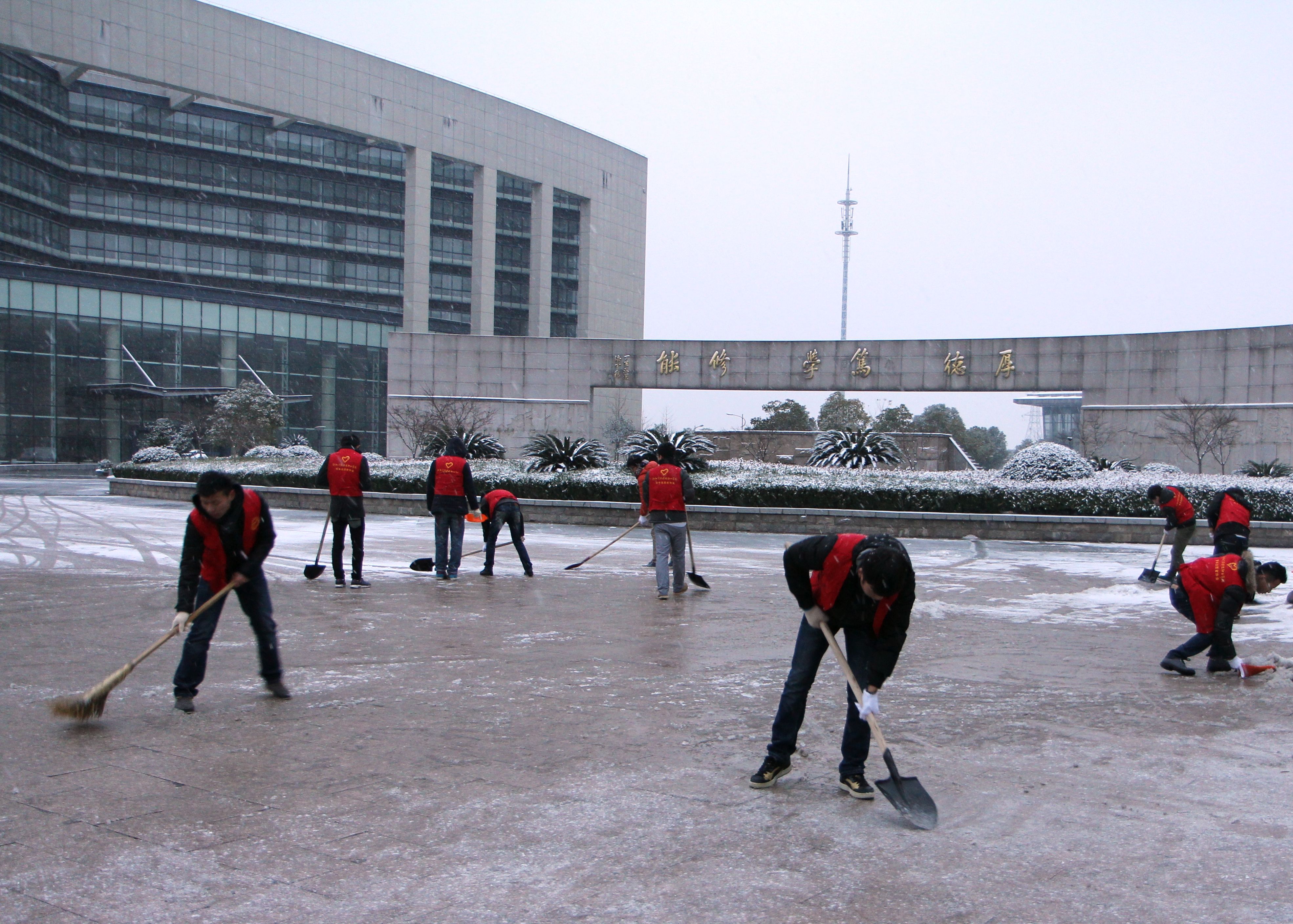 雪情就是命令,为保证校内师生安全,方便师生出行,1月4日清晨,学院团委、学生会、学生社团联合会组织学生干部投入到扫雪活动中来,同学们扛着铁锹,带着手套,不畏严寒地在各自的分担区内奋力清除冰雪。虽然气温很低,但是同学们却挥汗如雨,经过一个小时的奋战,校园主干道积雪全部及时清扫干净,确保了校园道路的畅通无阻,为师生们开辟了一条条洋溢着温情的通畅方便之路。