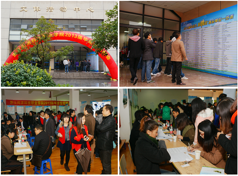 本次招聘会是我校2013届毕业生首场综合招聘会,启动早、规模大,提供近1700个就业岗位。来校招聘的单位,涉及水利、建筑、机电、电力、广告设计、IT等多个领域。参会单位包括浙江省火电建设公司、中南建设集团、中国重汽集团杭州发动机有限公司、浙宝电器集团有限公司、歌山建设集团有限公司等知名企事业单位。招聘会现场,毕业生积极投递简历,用人单位与学生展开了充分的沟通,赢得毕业生的青睐,不少毕业生与用人单位当场达成了初步意向。