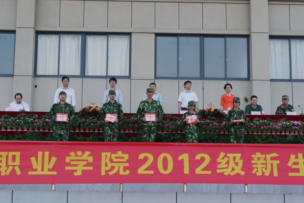 典礼上还评出了军训优胜连、优胜寝室、优胜个人荣誉,并进行了颁奖。院领导还代表学院向承训部队领导赠送了锦旗,感谢他们十天来的辛勤付出 。
