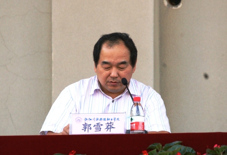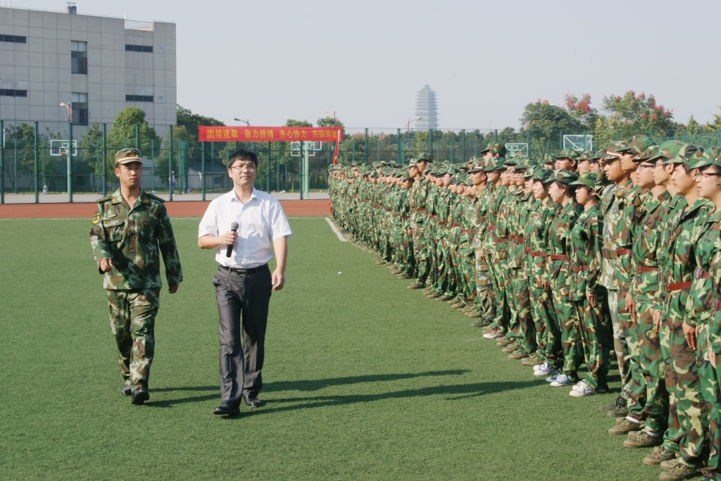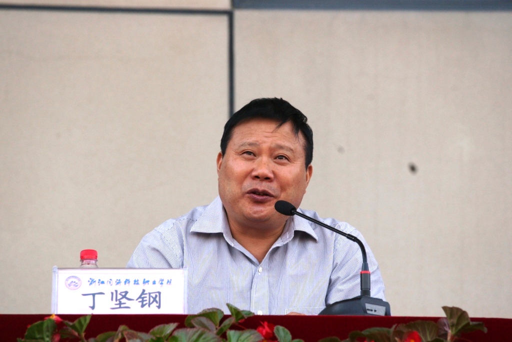学院党委书记丁坚钢在典礼上作了讲话。他充分肯定了全体受训学生在十天艰苦训练中所体现出来的良好精神风貌和取得的丰硕成果,并指出,军训是同学们入学后交上的第一份优秀答卷,它不仅使同学们学到了国防知识,增强了国防观念,培养了同学们的团队精神,同时,也锤炼了大家吃苦耐劳、坚忍不拔的意志,更让大家学到了寝室的内务管理,做到清洁有序,自觉养成良好习惯,为创建文明寝室打下扎实基础。在军训中,同学们充分发扬了英勇顽强、艰苦奋斗的精神,轻伤不下火线,坚持训练到底,充分展现了当代大学生的良好精神风貌。通过这次军训活动,同学们的毅力、意志和信念得到了一次真正的考验,丁书记希望全体新生要以这次训练为契机,以教官为楷模,以严谨的作风为准绳,继续发扬自强不息的精神,将军训的精神和学院“厚德、笃学、修能”的校训完美结合,以饱满的热情投入到以后的学习和生活中去,以良好心态去接受人生道路中一次又一次严峻的考验。